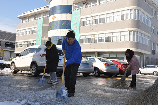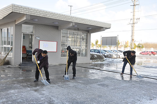 26日一大早,三圣高管團隊在馮圣君董事長的帶領之下,操起鐵鍬,揮舞掃帚,分區(qū)分片,親自清除廠區(qū)主干道上的結冰積雪。為了安全與暢通,現場熱火朝天。